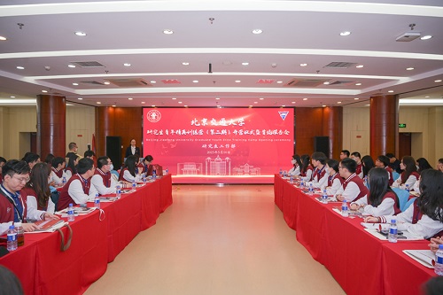 许安国为第二期训练营代表授旗。首期训练营学员代表陈俊熙讲述了参与训练营活动的收获以及对于如何努力成为领军人才的感悟。现场通过《青年精英,请回答》视频,展示了训练营营徽、营训、营旗等标识。学员代表以朗诵形式发出“知行合一,德业兼修,尽吾所学,为国之用”的坚定宣言。